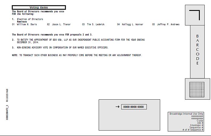 Requests, instructions and other inquiries sent to this e-mail address will NOT be forwarded to your investment advisor. Please make the request as instructed above on or before May 29, 2014 to facilitate timely delivery.