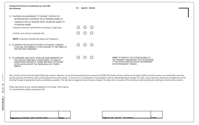 We encourage you to review all of the information contained in the proxy statement and accompanying materials before voting. This notice is not a form for voting and presents only an overview of the more complete proxy materials, which contain important information. If you would like to receive additional paper or email copies of the proxy materials at no charge, or if you would like information about how to attend the Special Meeting in person, please contact Laurel Hill Advisory Group LLC at (888) 742-1305 or telkonet@laurelhill.com on or before October 20, 2021, to facilitate timely delivery.