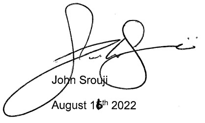 THIS AGREEMENT, dated _August 16th, 2022, is entered into by and between Telkonet, Inc., a Utah corporation, and its respective current and former parent companies, successors, predecessors, subsidiaries and other affiliated companies as well as any of their respective current and former directors, officers, agents, shareholders, and employees (“Telkonet” or “Company”) and John Srouji (“Executive"). The Company and Executive may be referred to as the "Parties" or the "Party."